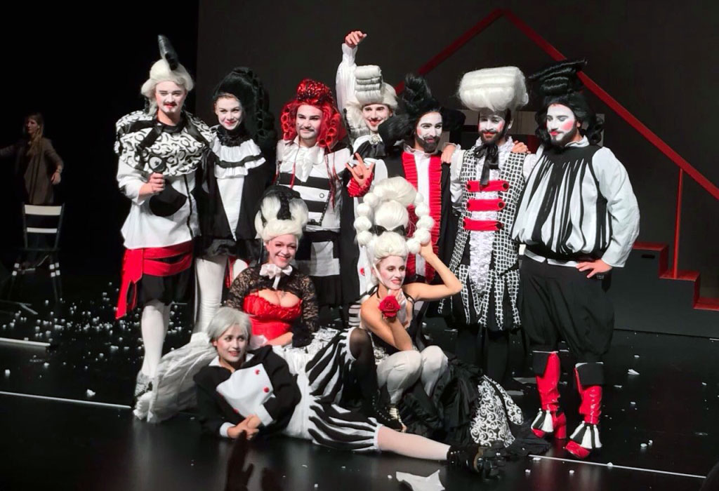 In was für eine verzwickte Lage hat sich Truffaldino gebracht! Da ist er sogar noch in den Dienst eines zweiten Herrn getreten, um sich endlich einmal richtig satt essen zu können. Doch ihm fehlt die Zeit. Er wird mit Aufträgen hin- und hergeschickt. Sein erster „Herr“ ist Beatrice Rasponi, die unter dem Namen und in der Verkleidung ihres Bruders Federigo reist. Sie ist auf der Suche nach ihrem Geliebten Florindo. Er soll Federigo in einem Streit getötet haben und ist nun in Venedig auf der Flucht. Ausgerechnet Florindo wird Truffaldinos zweiter Herr! Zu allem Überfluss kommt noch dazu, dass beide im gleichen Gasthaus übernachten! Als „Diener zweier Herren“ muss sich Truffaldino Lügen ausdenken, um Beatrice und Florindo glauben zu lassen, er diene jedem von ihnen allein …
